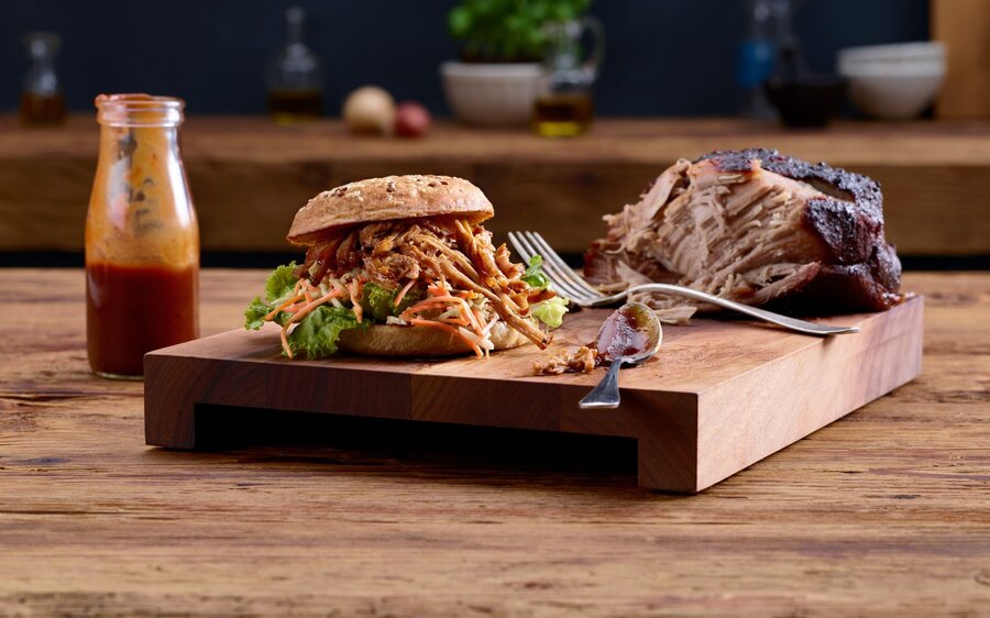 Von 18 -22 Uhr gibt es Pulled Pork im Treberbrötchen. Das Fleisch wird 48 Stunden gegart, bevor es im Ofen den letzten Schliff erhält und im selbergebackenen Treberbrötchen mit Coleslaw serviert wird. Dazu gibt es 6 Biere frisch ab Zapfhahn.